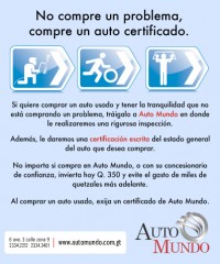 No compre un problema, compre un auto certificado.Visita nuestra Página Web |