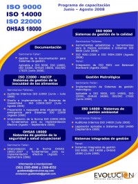 ISO 9000, ISO 14000, ISO 22000, HACCP, OHSAS 18000 - Programa de capacitación Junio - Agosto 2008 |